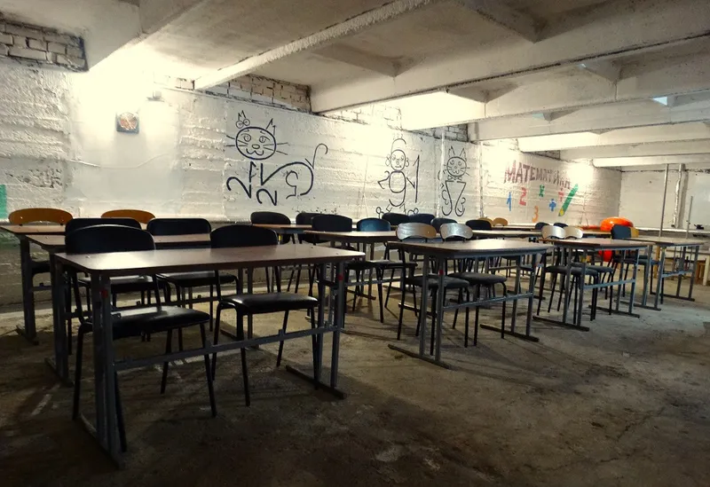 Un alt moment impresionant a fost vizita la școlile ucrainene din Nikopol, unde orele se desfășoară nu în sălile de clasă obișnuite, ci în buncărele amenajate la subsol. Aici am văzut cabinetul de matematică, pe cel de fizică, biologie și chimie, dar și, oarecum paradoxal, pe cel de astronomie.