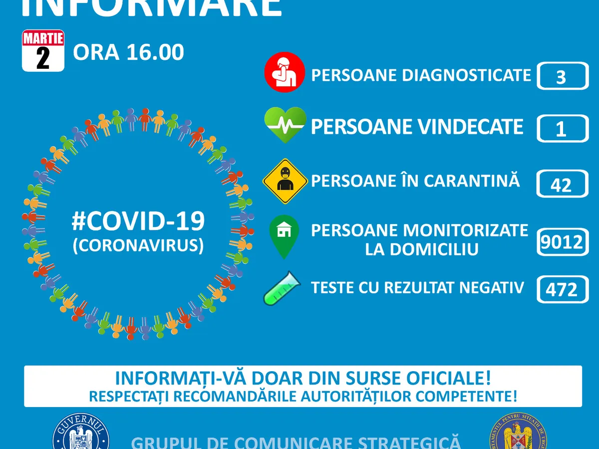 Dintre acestea 472 au ieșit cu rezultat negativ, adică persoanele de la care au fost prelevate mostrele analizate nu sunt infectate cu virusul și trei cazuri, mediatizate deja, au avut rezultat pozitiv.