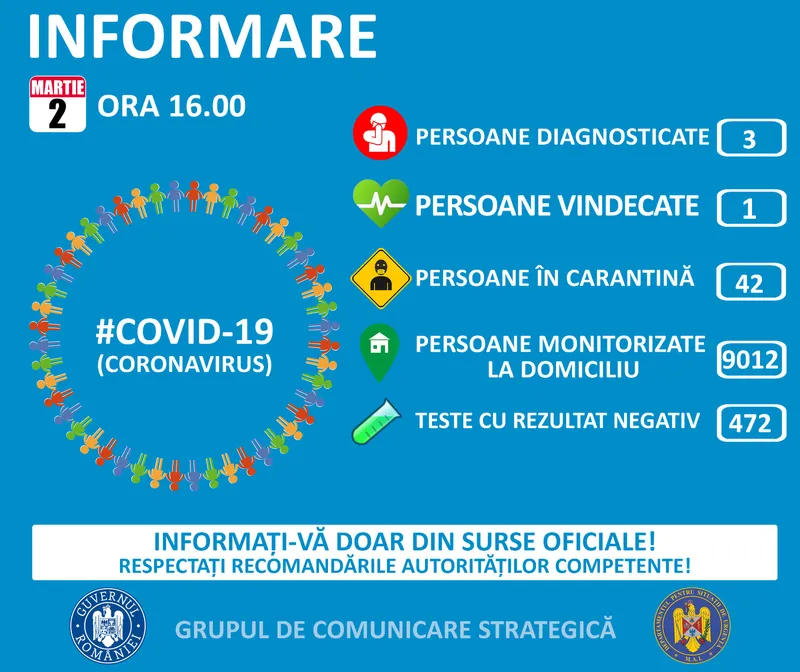 Comitetul Special pentru Situații de Urgență a mai anunțat și că cei doi români cu coronavirus sunt în stare stabilă.