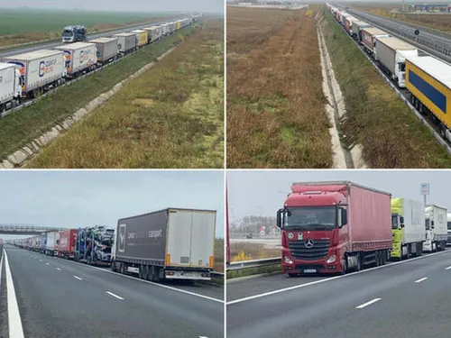 Coloane de camioane de până la 8 kilometri s-au format, miercuri, înainte de punctele de trecere a frontierei Nădlac II şi Vărşand. Șoferii aşteaptă cel puţin două ore şi jumătate pentru formalităţile de trecere în Ungaria, unde personalul alocat e insuficient.