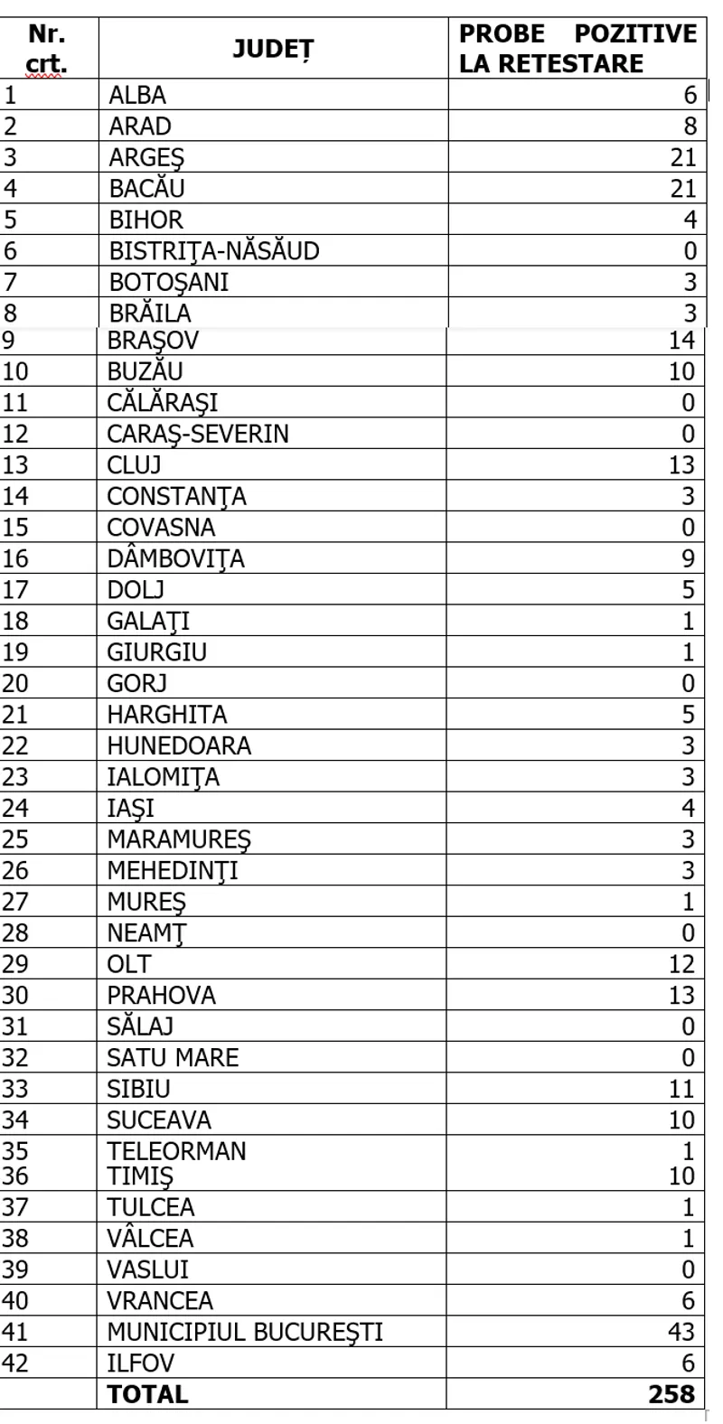 Distinct de cazurile nou confirmate, în urma retestării pacienților care erau deja pozitivi, 258 de persoane au fost reconfirmate pozitiv.