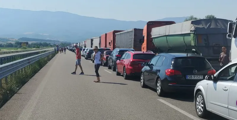 ”Aici sunt câțiva km de coadă. Probabil va dura ore...”, scrie un român pe un grup de Facebook dedicat celor care își fac vacanța în Grecia.