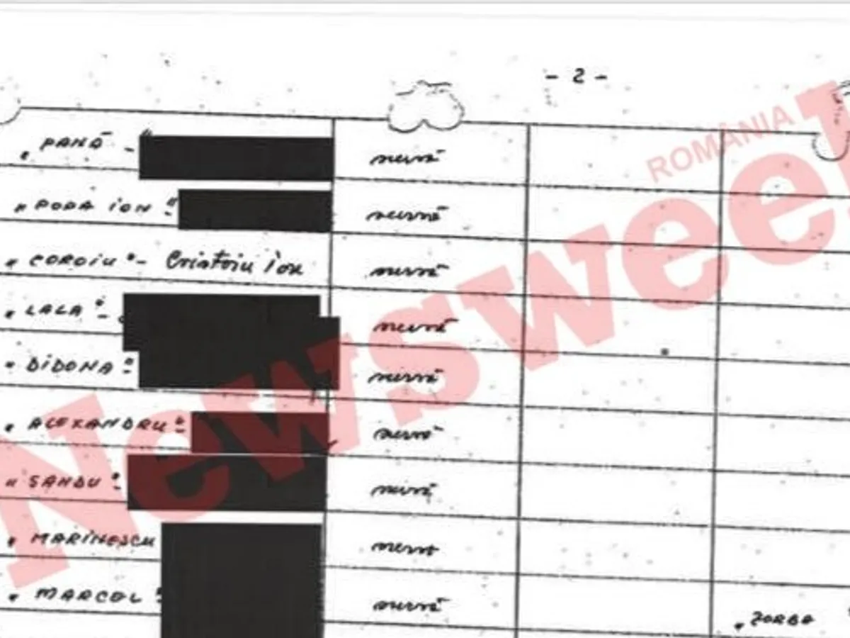 Un alt document depus de CNSAS în instanță este tabelul publicat deja de istoricul Mădălin Hodor, anul trecut, în revista „22”. Este vorba despre o listă cu „colaboratori care au fost în cartoteca UM 0503” (fosta arhivă a Direcției de Informații Externe), printre care apare și numele lui Ion Cristoiu.