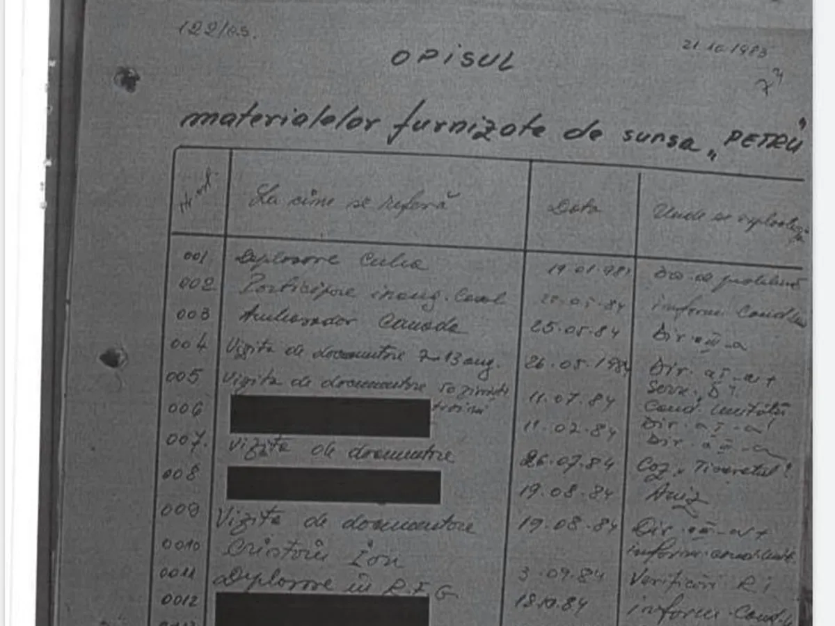 Documentul datează din 13.05.1985. Un alt document despus este Dosarul 120 (vol. 4) – „Artă-Cultură”, din arhiva fostei Securități, în care apare „obiectivul Coroiu” și în care sunt note de interceptare telefonică. De menționat este că această măsură de supraveghere nu se lua doar împotriva urmăriților. Inclusiv colaboratorii Securității erau urmăriți, la rândul lor, de alți informatori sau prin tehnică operativă, tocmai pentru a li se verifica „loialitatea”.