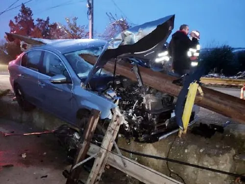 Un tânăr de 26 ani a scăpat ca prin minune dintr-un accident în urma căruia mașina i-a fost străpunsă de un parapet dintr-o parte în alta, foarte aproaped e capul șoferului.
