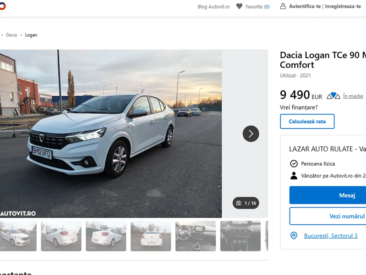 Practic, cu aceiași bani îți poți cumpăra un autoturism Dacia Logan Berlină 1.0 TCe 90CP Comfort EURO 6 din 2021 - second-hand, potrivit unui anunț postat pe Autovit.