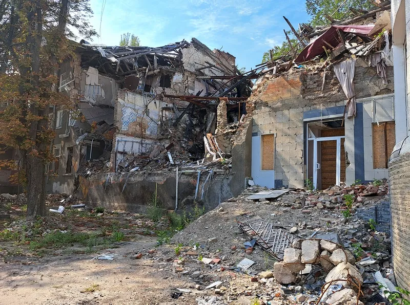 În Sloviansk, unde am înnoptat, alarmele sună des iar exploziile ori zgomotul făcut de aviație sau rachete reprezintă o rutină pe care o experimentezi de mai multe ori pe zi. Blocuri de locuințe, școli ori alte clădiri civile sunt atinse de explozii. Toate construcțile lovite au poveștile lor, dar de cele mai multe ori nu îi mai poți întâlni pe cei care ar putea să ți le spună.