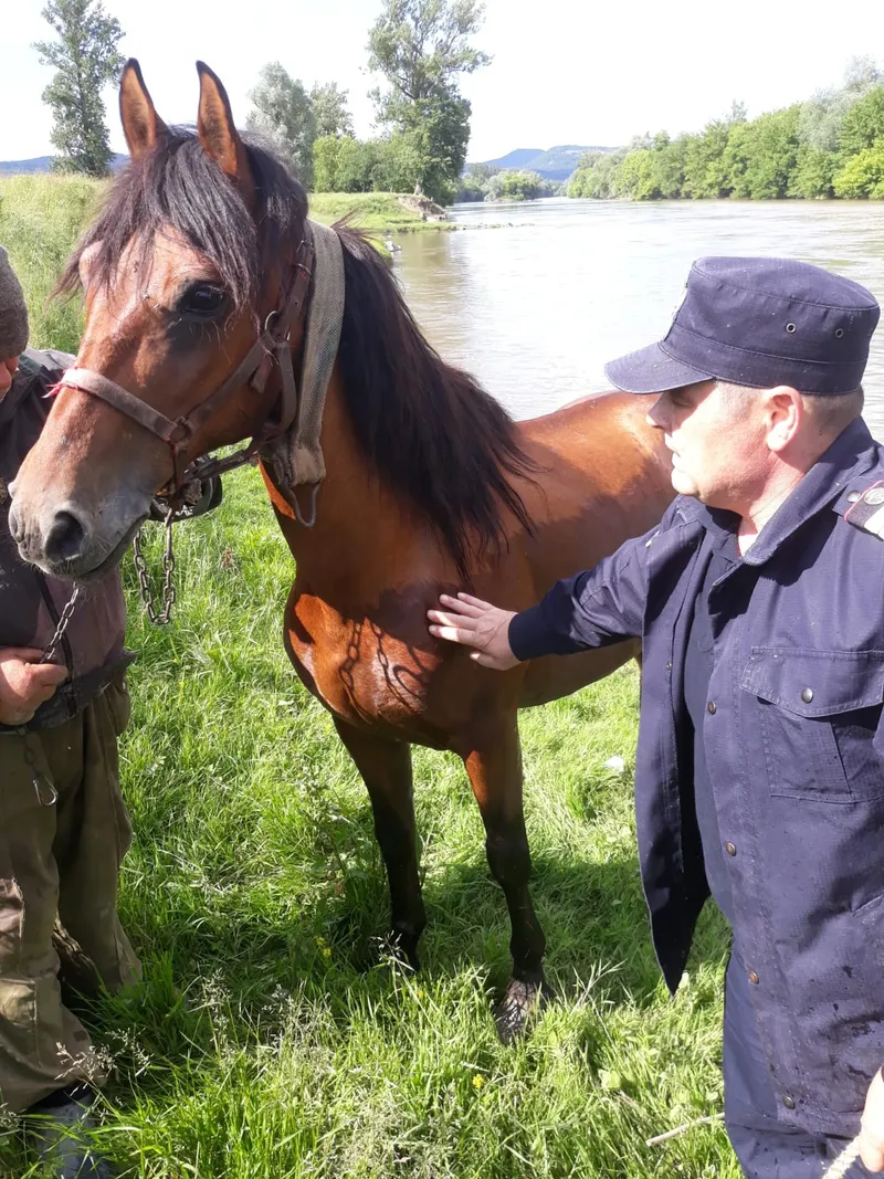 Calul a fost adus teafăr la mal unde se afla stăpânul lui.