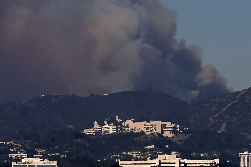 Muzeul Getty (în mijlocul imaginii) din Los Angeles a scăpat ca prin minune de incendiile care au devastat zone întinse din orașul american - Foto: Profimedia Images