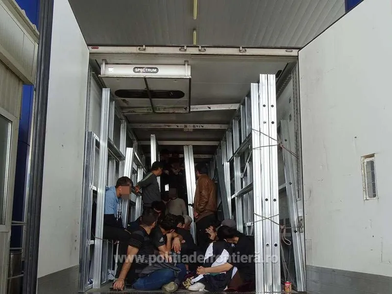 Polițiștii de frontieră din cadrul Punctului de Trecere a Frontierei Calafat-Vidin au depistat în urma unui control efectuat asupra unui autocamion condus de un cetățean turc, 21 cetăţeni sirieni și irakieni ascunși în interiorul compartimentului de marfă al acestuia.