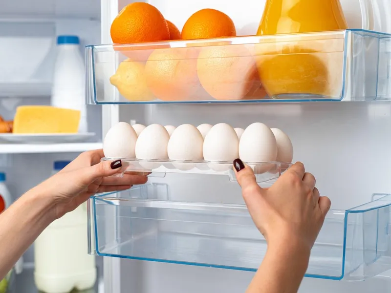Depozitarea ouălor pe ușa frigiderului, deși practică, poate afecta prospețimea acestora din cauza variațiilor de temperatură cauzate de deschiderea frecventă a frigiderului.