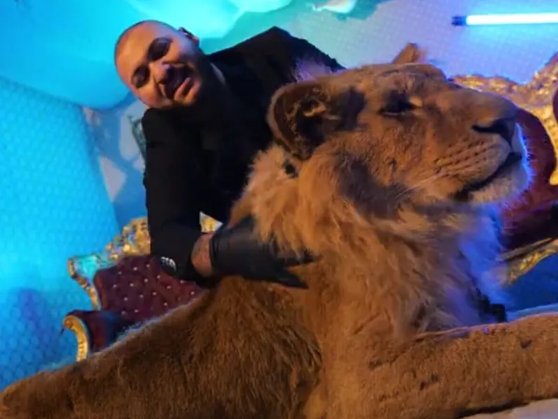Polițiștii argeșeni au anunțat deschiderea unui dosar penal după ce manelistul Dani Mocanu a filmat un videoclip în care apare un leu rănit şi subnutrit.