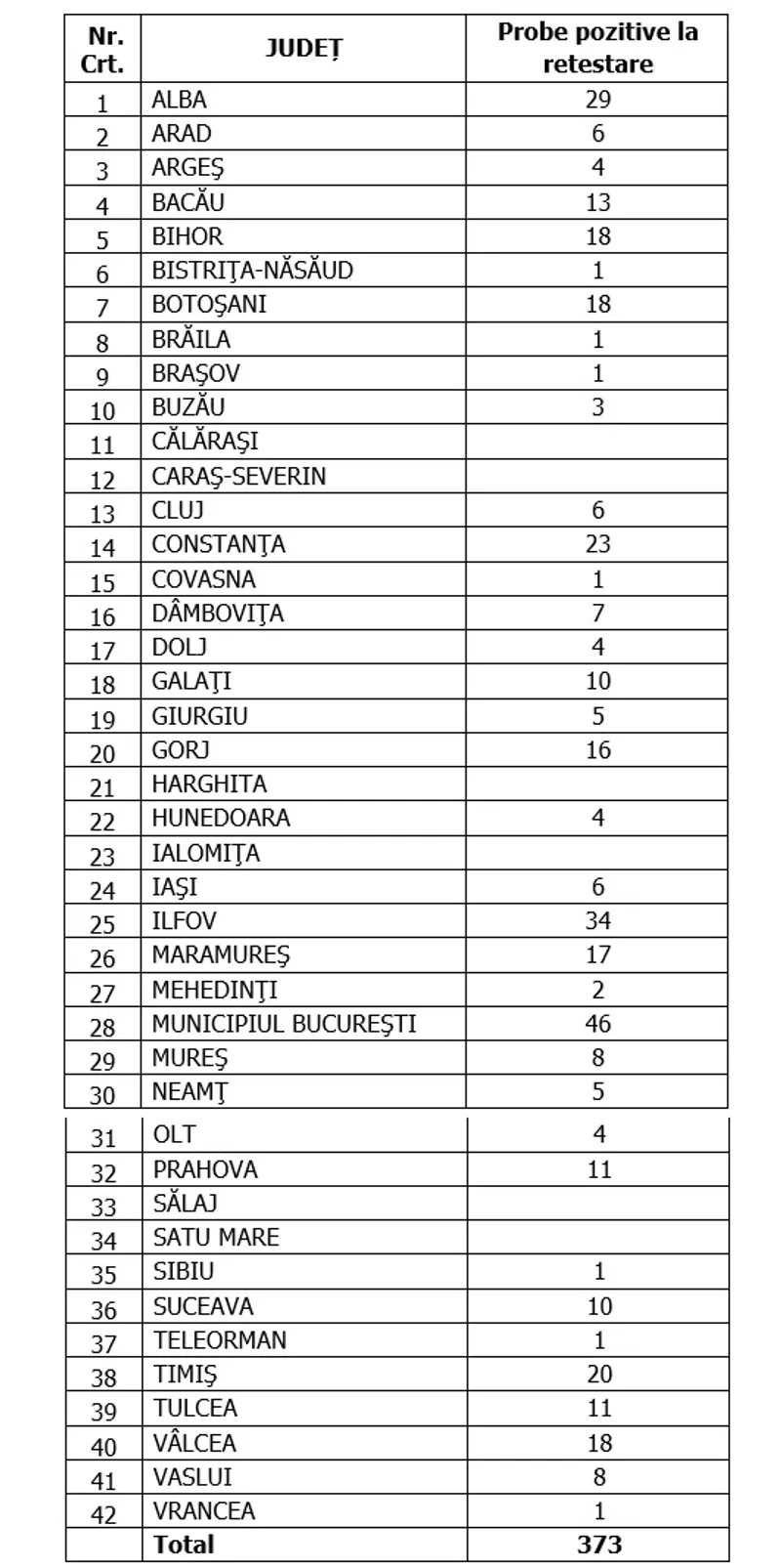 Distinct de cazurile nou confirmate, în urma retestării pacienților care erau deja pozitivi, 373 de persoane au fost reconfirmate pozitiv.