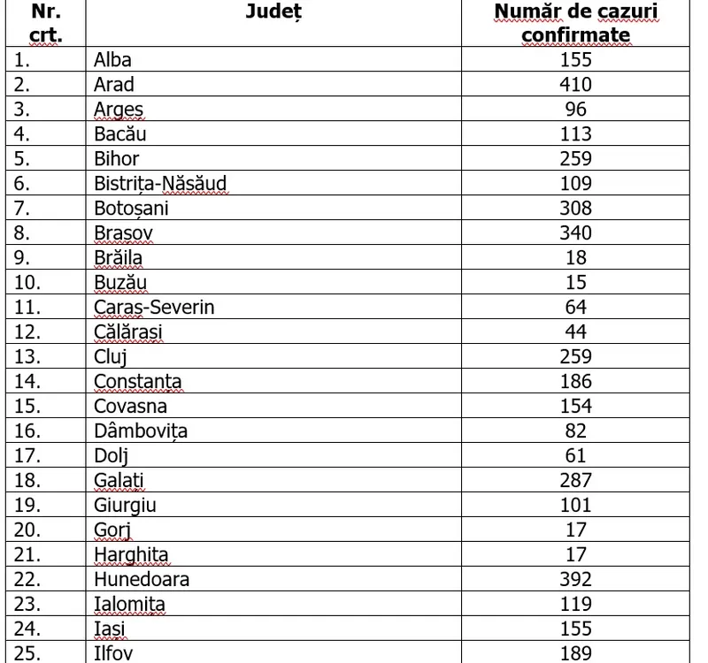 451 persoane diagnosticate cu infecție cu COVID-19, internate în spitale din Dolj, București, Iași, Suceava, Arad, Bacău, Timiș, Cluj, Neamț, Hunedoara, Constanța, Satu Mare, Sibiu, Ialomița, Bistrița-Năsăud, Covasna, Dâmbovița, Vrancea, Galați, Caraș-Severin, Mureș, Giurgiu, Bihor, Argeș, Vaslui, Botoșani, Alba, Sălaj, Brașov, Mehedinți, Teleorman și Gorj, au decedat.