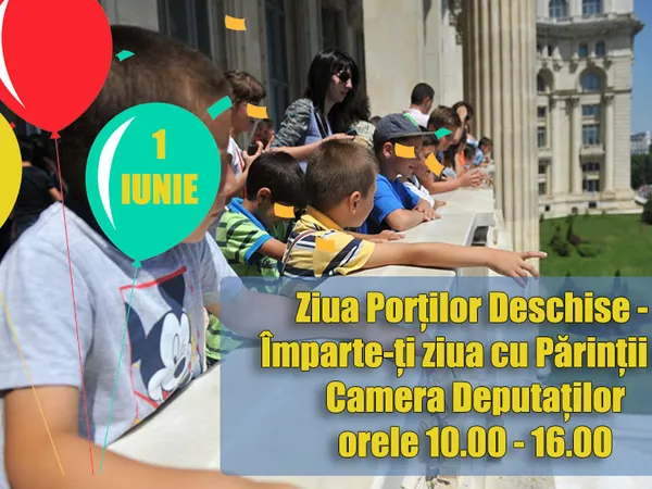 "Îţi doreşti să vizitezi Palatul Parlamentului, să admiri şi să te plimbi prin cea mai mare clădire administrativă din Europa? Pe 1 Iunie, o zi specială, dedicată celor mici, Camera Deputaţilor invită copiii şi însoţitorii acestora să participe, gratuit, la Ziua Porţilor Deschise", precizează organizatorii într-un eveniment postat pe pagina de Facebook a forului legislativ.