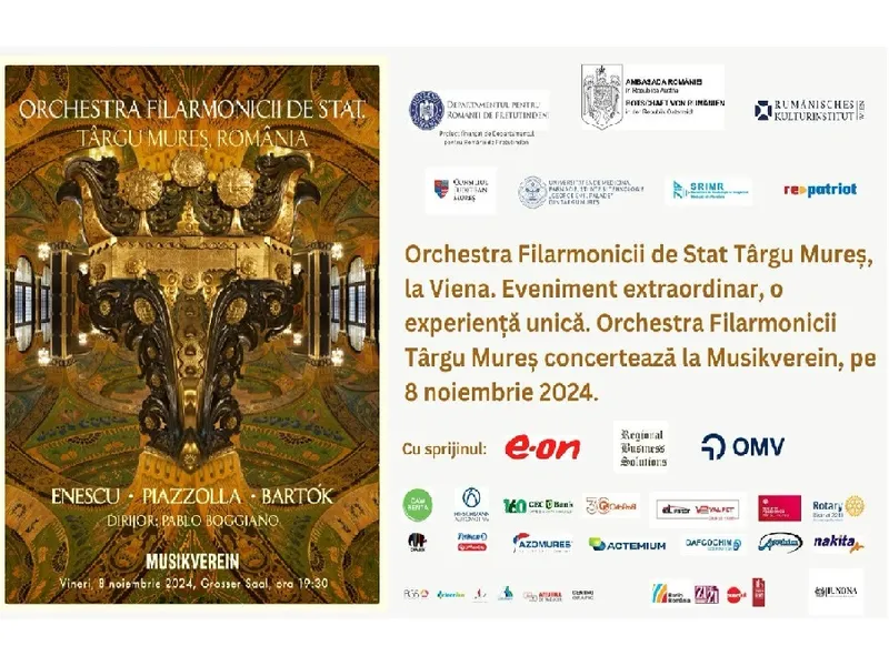 ”Suntem încântați să susținem participarea Orchestrei Filarmonicii Târgu Mureș la concertul extraordinar de la Musikverein, din data de 8 noiembrie 2024. Atragerea românilor către spațiile culturale românești sunt un catalizator al acțiunilor noastre. Cultura reprezintă un liant important pentru asigurarea unui cadru propice care să ajute la crearea contextului de a face punți mai solide între diasporă și țară.
