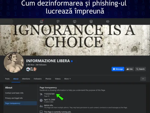 Această speță are în centru o pagină de Facebook cu milioane de urmăritori (Informazione Libera) care a fost (cel mai probabil) compromisă de atacatori. Indiciul principal este faptul că pagina respectivă nu a mai publicat postări din luna mai 2023, în schimb a lansat multiple anunțuri sponsorizate, în diverse limbi europene. Atacatorii au putut astfel profita de audiența bogată a acestei pagini pentru a fi cât mai eficienți în răspândirea mesajelor", se arată într-un comunicat de presă al DNSC, transmis joi AGERPRES.