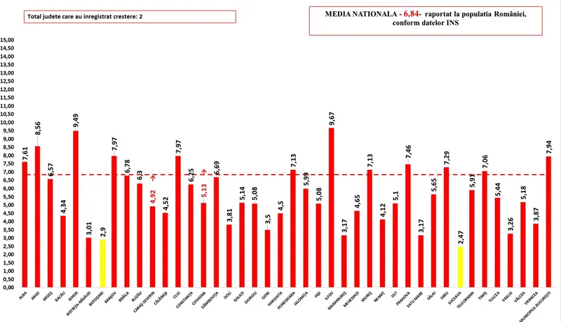 Două județe s-au întors în scenariul galben: Suceava - 2,47 la mie și Botoșani - 2,9 la mie