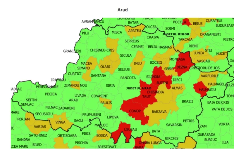 În județul Arad sunt cele mai multe localități în scenariul roșu - nouă.