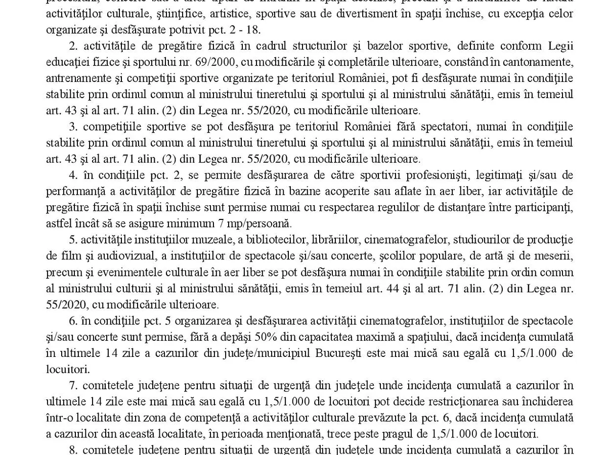 COVID-19, aprobată cu modificări şi completări prin Hotărârea Parlamentului României nr. 5/2020, cu