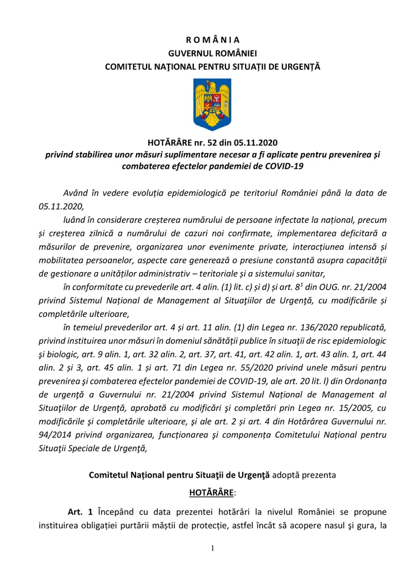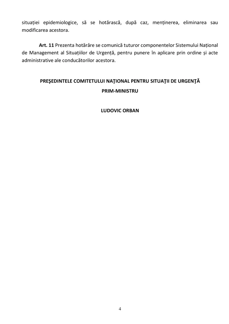 Propunerile se regăsesc în Hotărârea 52 a Consiliului Național pentru Situații de Urgență și vor fi aprobate prin Hotărâre de Guvern, a precizat, joi noaptea, Grupul de Comunicare Strategică.