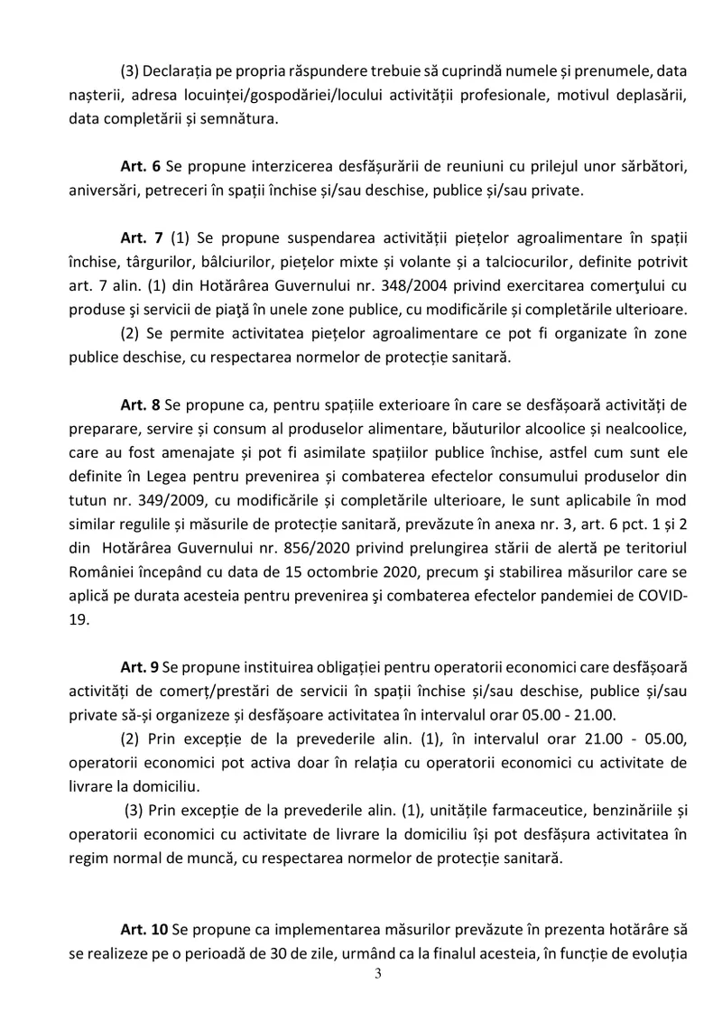 DOCUMENT Restricțiile care intră în vigoare de luni în toată țara. Când va fi nevoie de declarație