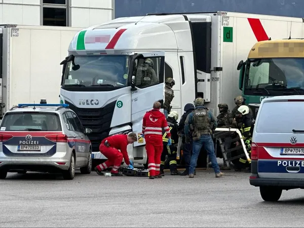 Cum șoferul român de TIR s-a baricadat în cabină și amenința că se înjunghie, polițiștii austrieci au chemat forțele speciale „Cobra” și un negociator.