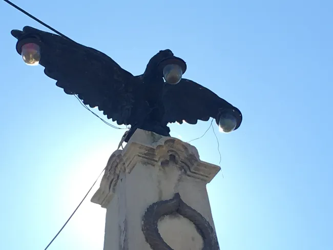 Statueta, ce reprezintă un vultur roman, era amplasată în vârful Monumentului Eroilor.