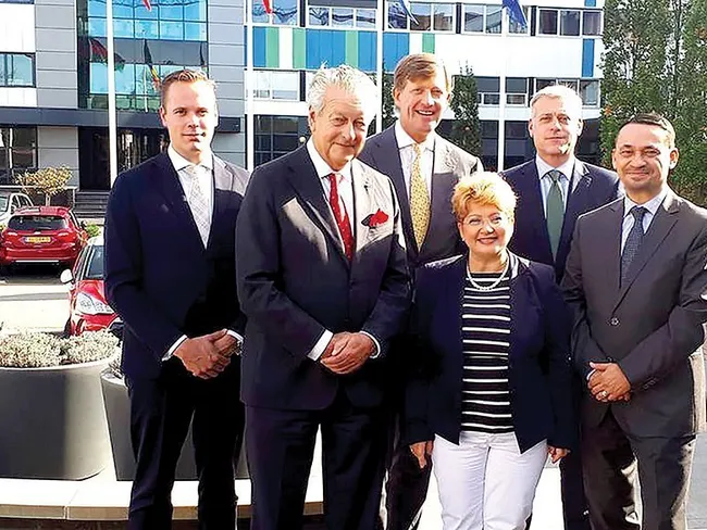 Proprietarul firmei olandeze Damen, Kommer Damen, nu s-a sfiit să se fotografieze cu diplomații români de la Haga: ambasadorul Ioana Predescu Brândușa și atașatul economic Cristian Mateescu.