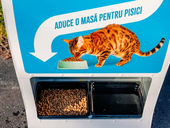 Două dispozitive inteligente pentru hrănirea pisicilor fără stăpân au fost amplasate în București