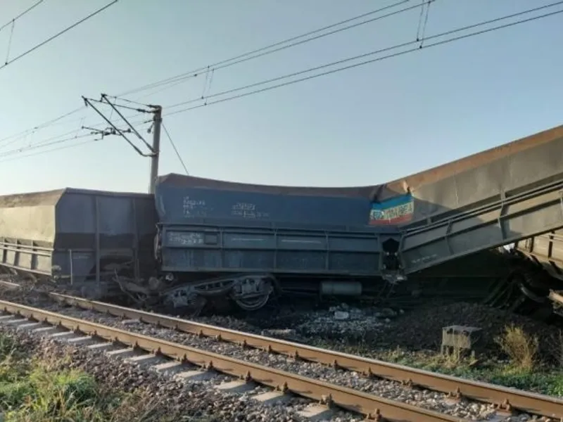 Din primele informaţii, cele două trenuri de marfă circulau pe aceeaşi linie, dar traficul este blocat pe ambele sensuri, după ce un vagon a deraiat.