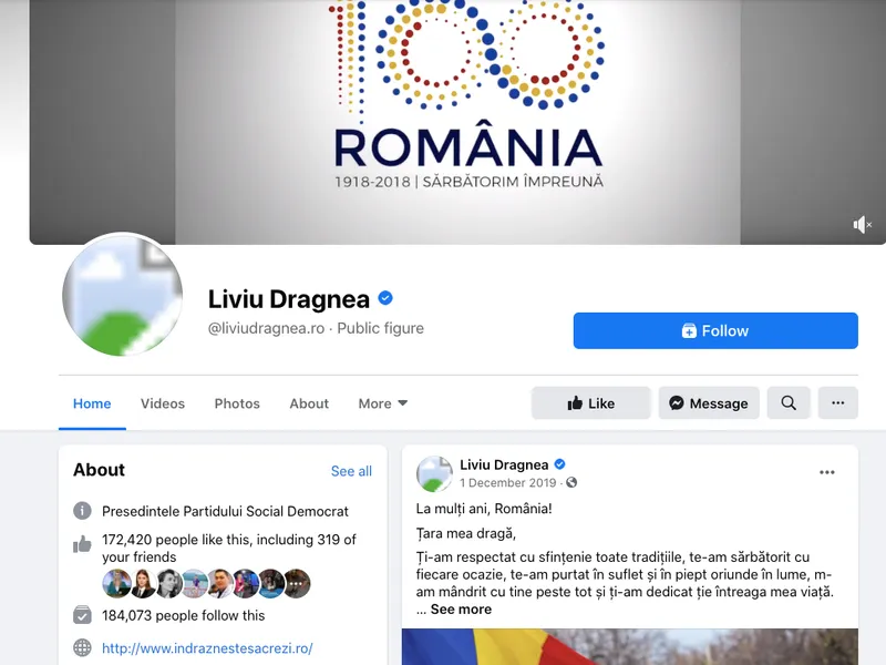 Imaginea lui Liviu Dragnea nu mai apare la fotografia de profil a contului său oficial de Facebook, fiind înlocuită de o imagine pixelată în tonuri pale. Nu este clar dacă asta a fost intenția administratorului contului sau nu.