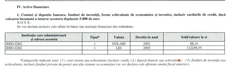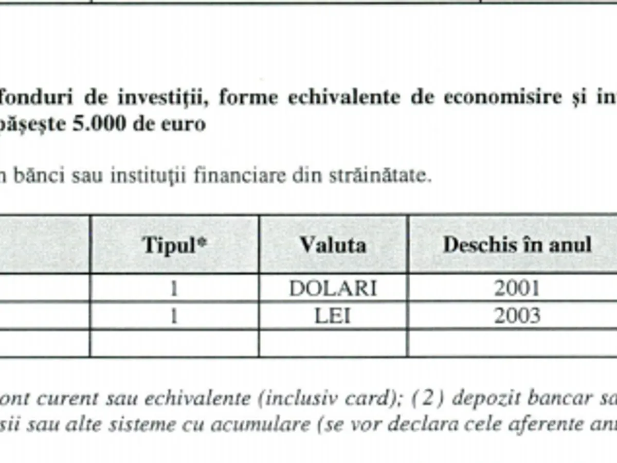Un an mai târziu, adică anul acesta, situația conturilor era astfel: dolarii au dispărut aproape integral iar leii au ajuns la peste 112.000.