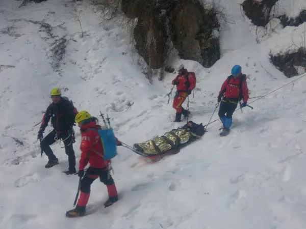 Acţiunea salvamontiştilor este foarte dificilă din cauza întunericului, a temperaturilor scăzute, a terenului acoperit cu gheaţă şi acumulări de zăpadă.