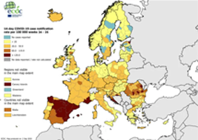 Totuşi, cinci ţări (Germania, Austria, Suedia, Danemarca şi Islanda) nu au fost evaluate în această hartă cu cod de culori din „lipsa datelor de la teste” dintr-un motiv neprecizat. ECDC nu a putut comenta deocamdată această absenţă, notează agenția France Presse, citată de Agerpres.
