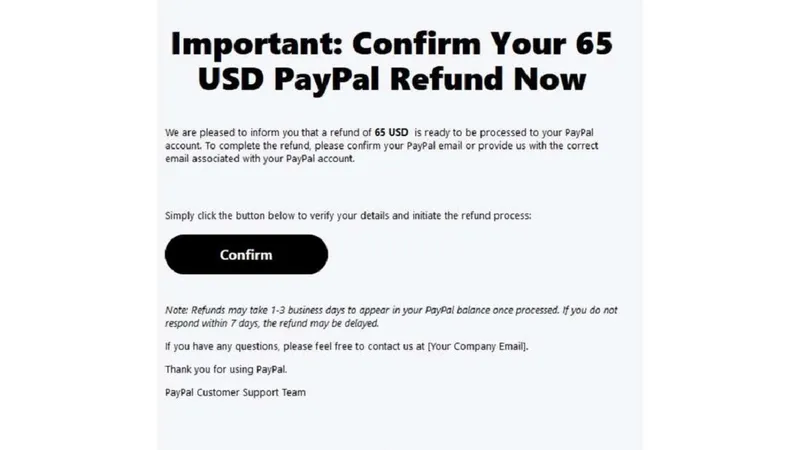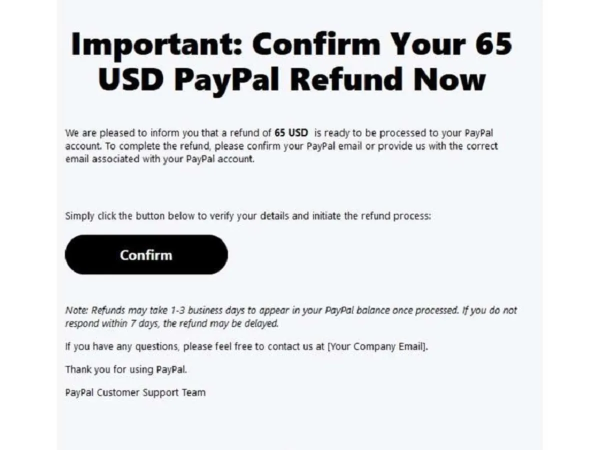 Escrocherie în numele unui serviciu de plăți online. ”Aveți o rambursare de 65 $”. Nu dați click!