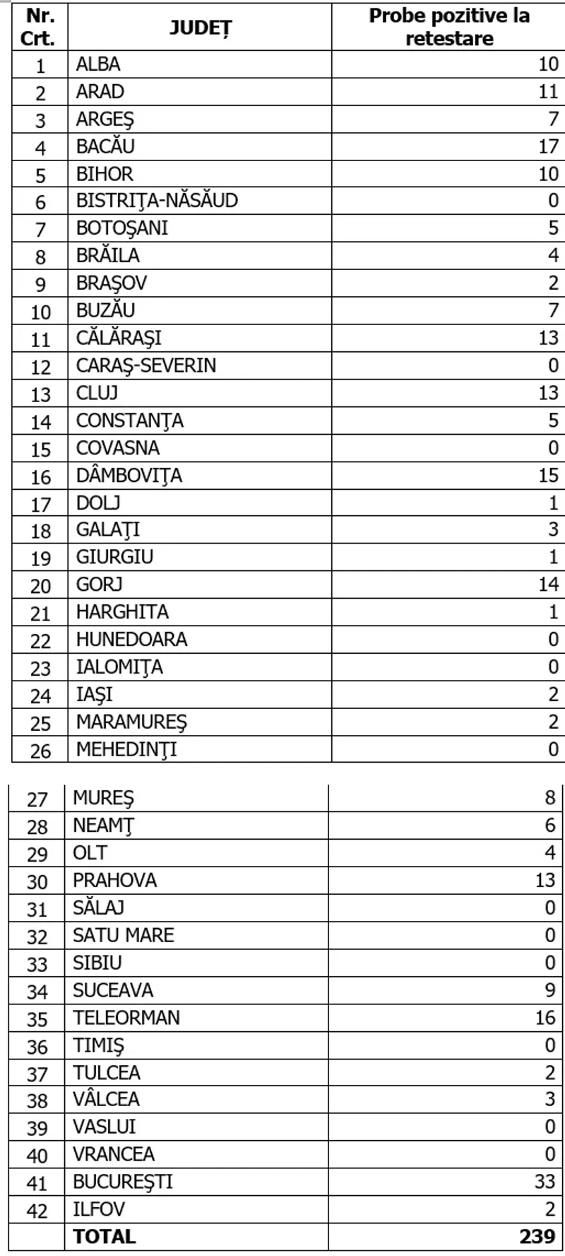 Până la această dată, la nivel național, au fost prelucrate 1.945.738 de teste. Dintre acestea, 7.247 au fost efectuate în ultimele 24 de ore, 4.613 în baza definiției de caz și a protocolului medical și 2.634 la cerere.