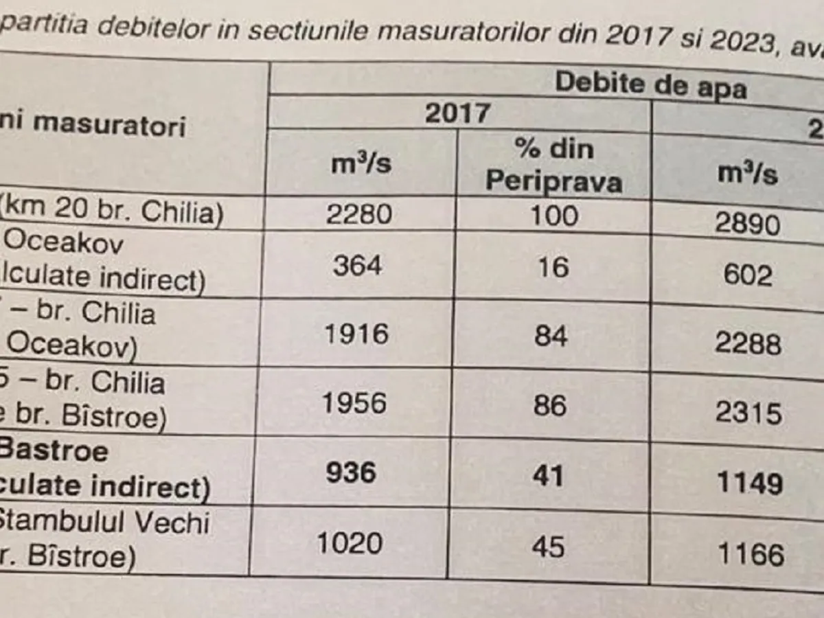 Apele Române au măsurat deja debitele pe brațele Chilia și Bîstroe, și nu au găsit „modificări semnificative”. „Nu au fost înregistrate modificări majore între măsurătorile din anul 2017 și cele din 2023”, iar „repartiția debitelor pe Brațul Chilia (aval Periprava) și brațele secundare Oceakov și Bîstroe poate fi încadrată ca o situație normală”, este concluzia documentelor consultate.