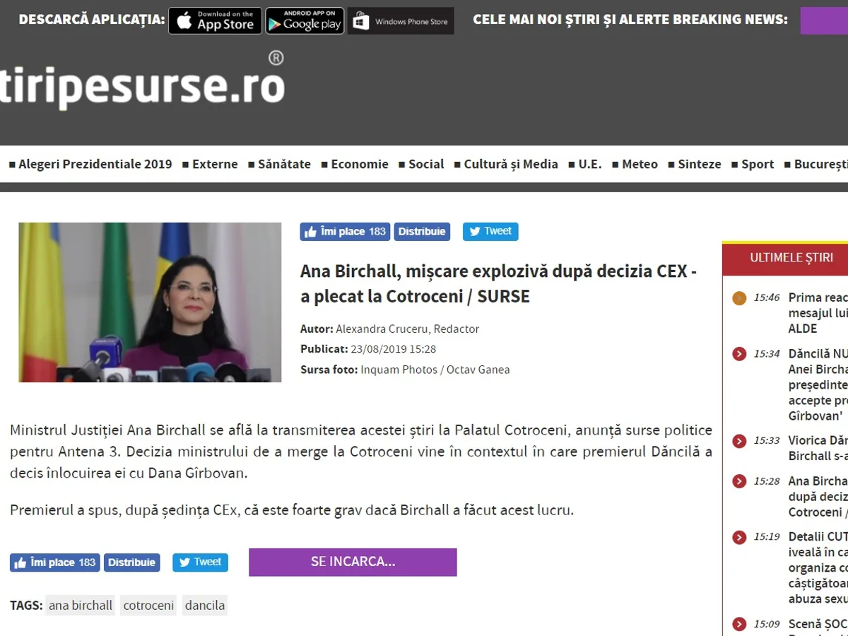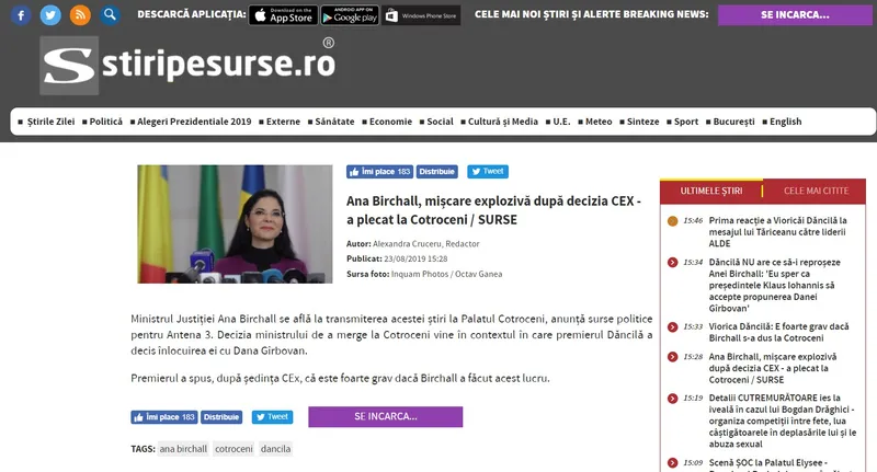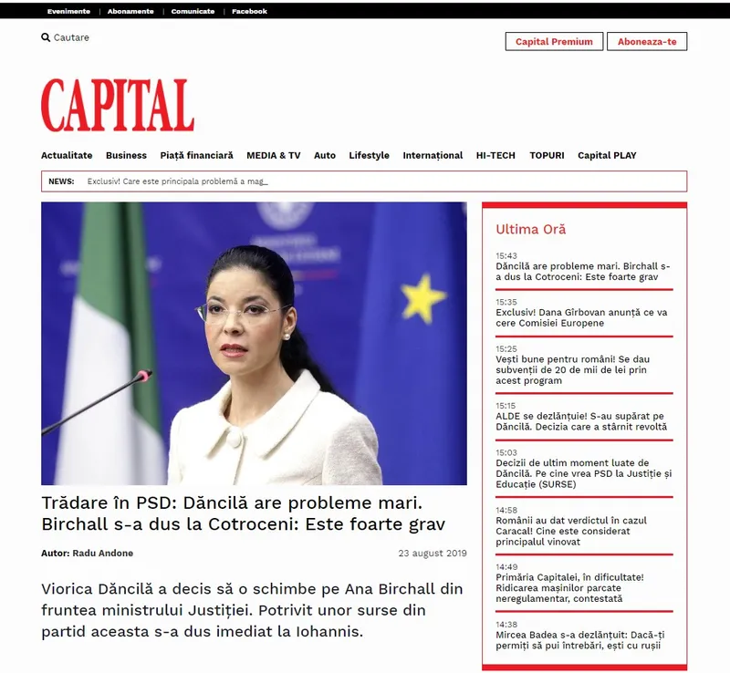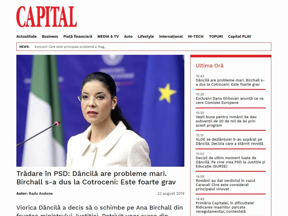 Ce titra Capital despre Ana Birchall. Întrebată în conferința de presă de după CEx despre acest fake news, Viorica Dăncilă a declarat că „e foarte grav dacă a făcut acest lucru. Ea e membru PSD și rezolvăm problemele în partid.”