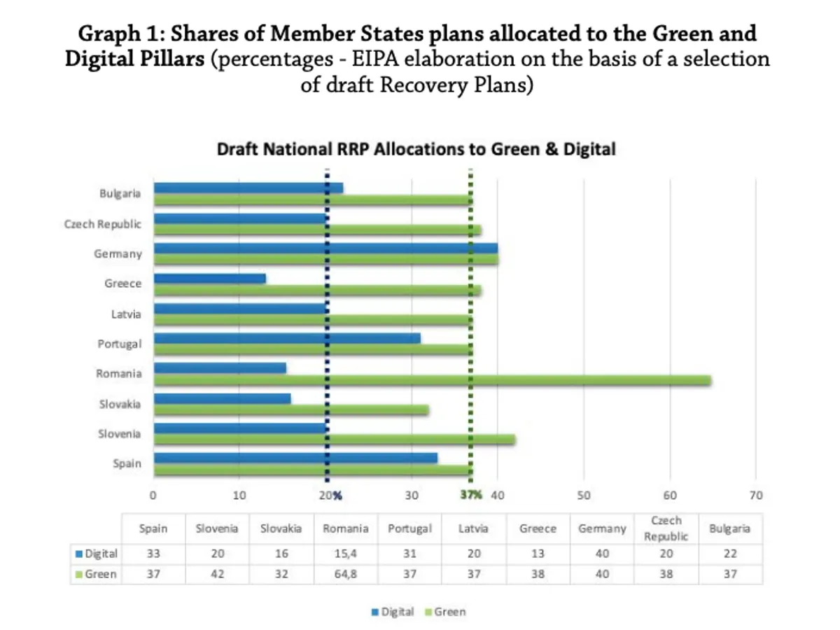 O analiză a EIPA (Institutul European de Administrație Publică), însă, din februarie a.c., arată că draft-ul de PNRR al fostului ministru al Fondurilor Europene, Marcel Boloș, conținea componente de digital și verde mult mai generoase decât cele prezentate de Ghinea.