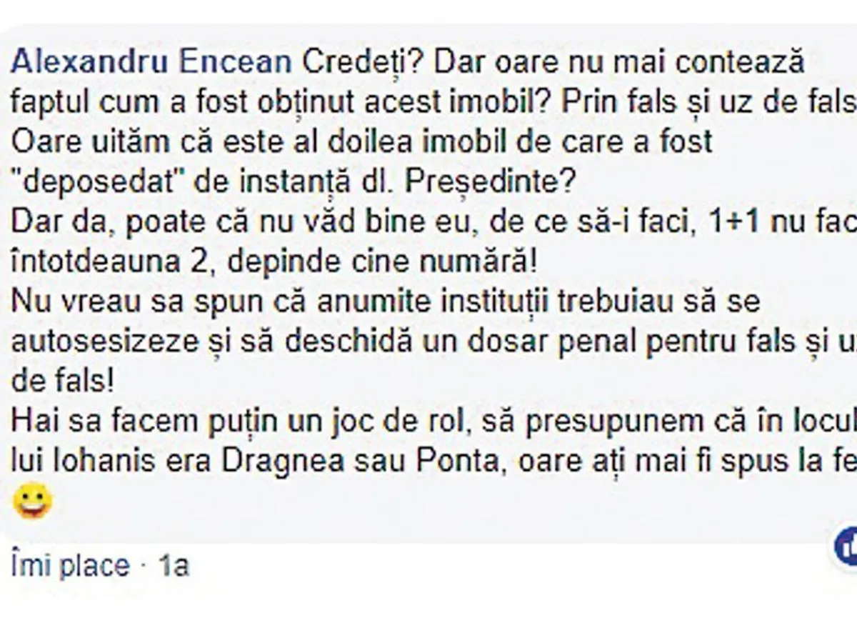 Alexandru Nicolae Encean, soțul unei judecătoare de la Înalta Curte de Casație și Justiție care are în față unul dintre cele mai importante dosare din ultimii ani, cel al lui Liviu Dragnea, a postat ani la rând pe Facebook comentarii parcă desprinse din discursurile pesediștilor Codrin Ștefănescu, Șerban Nicolae sau Cătălin Rădulescu.