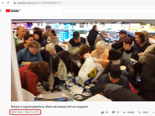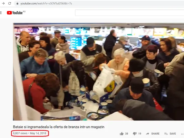 Clipul a început să circule de astăzi dimineață pe Whatsapp și a fost trimis inclusiv la români din afara țării. Imaginile sunt din 2018, atunci când a fost o ofertă la brânză într-un supermarket, iar oamenii s-au încăierat în zona caselor de marcat.