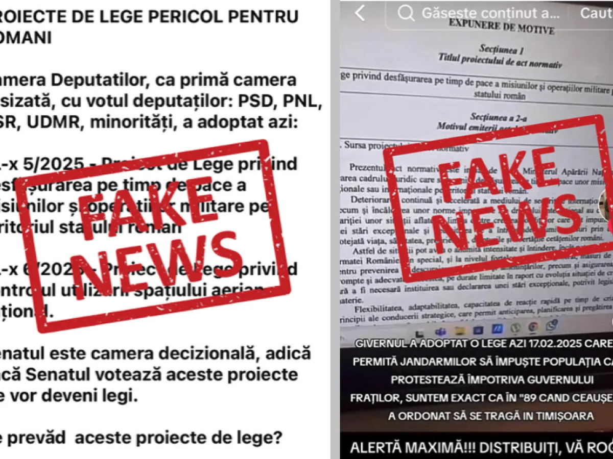 „Principalele narative dezinformatoare care circulă în spațiul public susțin, fără nicio bază reală, că aceste legi ar impune recrutarea obligatorie a cetățenilor români sau că minorii ar putea fi trimiși să lupte în Ucraina.