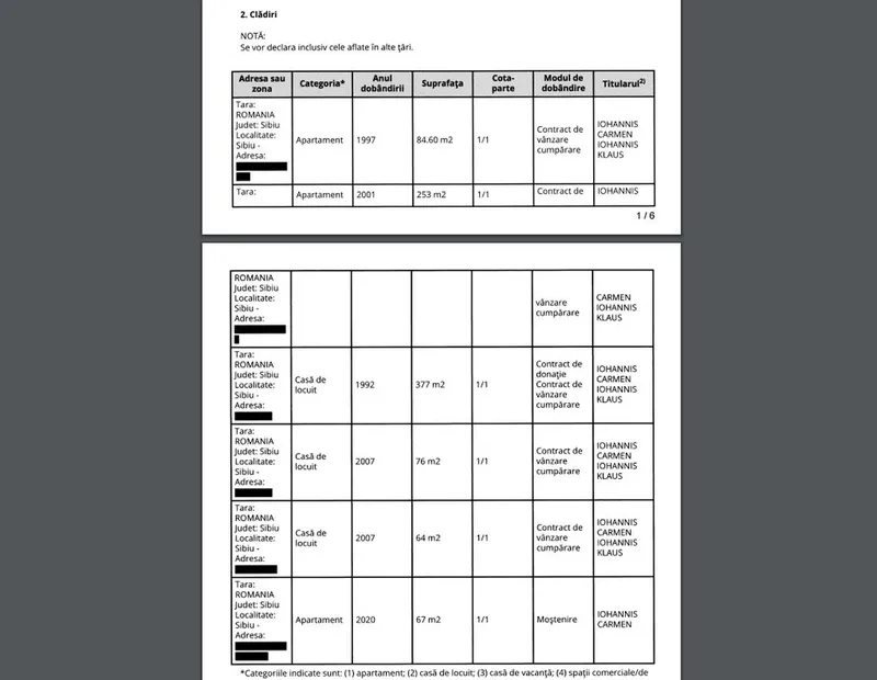 Conform declarației de avere a președintelui Klaus Iohannis, familia Iohannis deține 3 apartamente și 3 case în Sibiu.