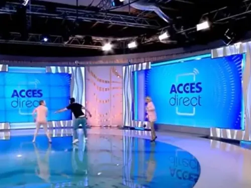 Femeia dezbrăcată a lovit din nou la Antena 1. Tot goală, acum a spart geamurile de la Acces Direct