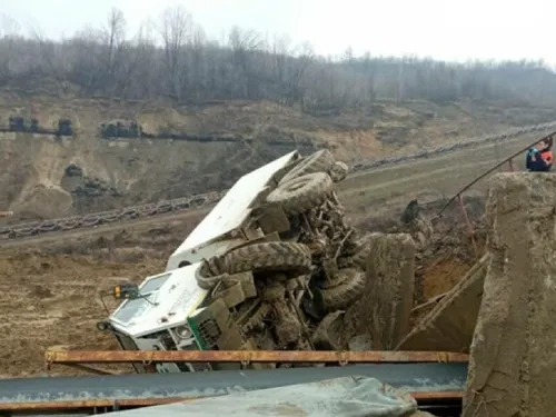 Aproape de capătul unei pante, înainte de podul de traversare a circuitului de benzi T204 bis, se pare că mașina a rămas fără frâne, din ce spun salariații aflați în aceasta, a derapat pe pod și a căzut lângă transportorul de cărbune.