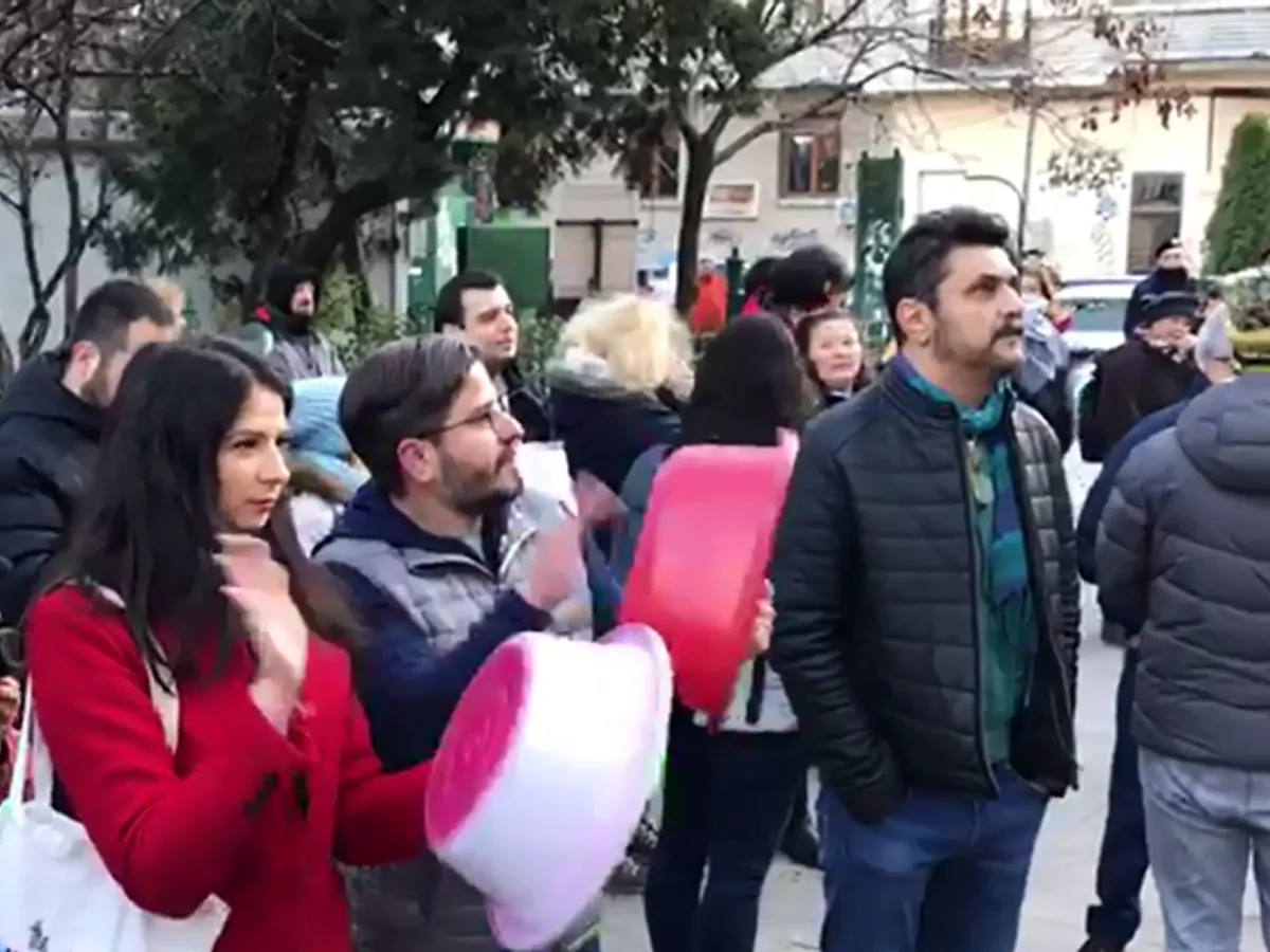 Flashmob cu ligheane, la Primăria Capitalei: „Apă caldă şi căldură, nu program ca-n dictatură"