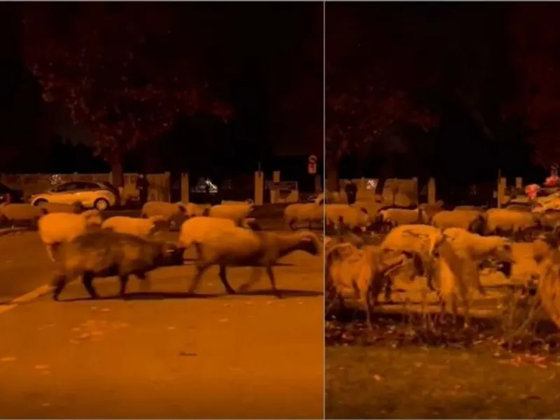 Desfăşurare uriaşă de forţe pentru a mâna zeci de oi rătăcite pe străzile din Bucureşti. Mai multe echipaje de poliţie au intervenit ca să adune animalele care au ajuns, culmea, tocmai în faţa Academiei de Poliţie.