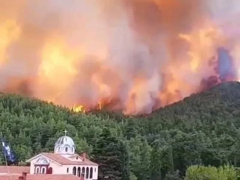 Focul de pe insula Evia (Grecia) nu a atins mănăstirea Sf. David. Pădurea de pini din jur este scrum