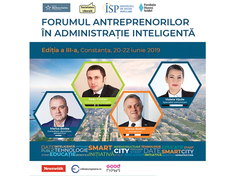 În perioada 20 - 22 iunie 2019 va avea loc la Constanța FORUMUL ANTREPRENORILOR ÎN ADMINISTRAȚIA INTELIGENTĂ – ediția a III a, organizat de Societatea liberală și ISP România,alături de partenerii lor internaționali Martens Centre for European Studies și Fundația Hanns Seidel.